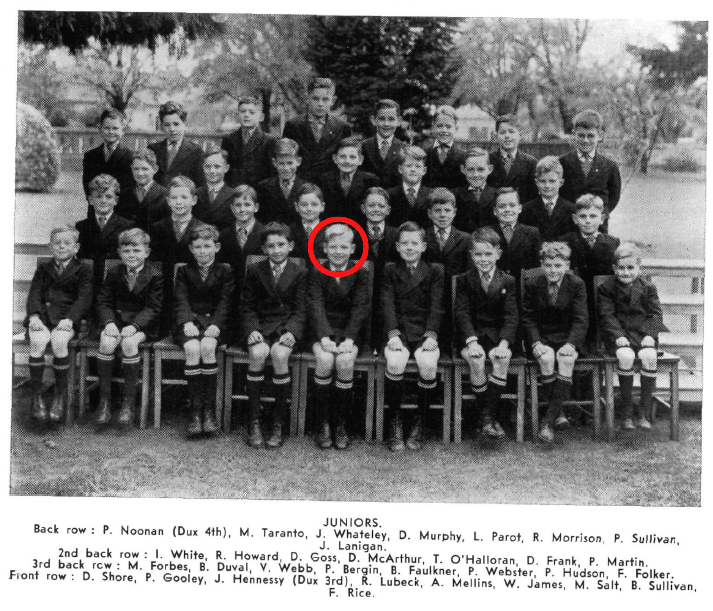 Alex started as a day student in juniors in 1954 and later became a boarder, completing his Matriculation in 1962. He was actively involved in school life, as a member of the McCarthy House football premiership team in the 1958 Park competition and winning the 100 yard race in his age division in the school’s Athletics sports in 1959.