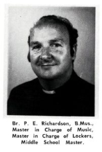 Br Richardson was a Mathematics teacher in Forms 5 & 6, helped with school liturgies as choir accompanist, was editor of the College Annual and a junior football coach.