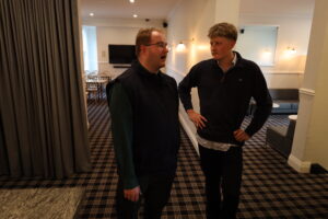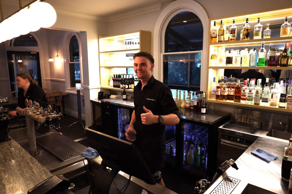 Nedd Bennett, pictured above, was able to combine catching up with the cohort with his bar duties at the same time!