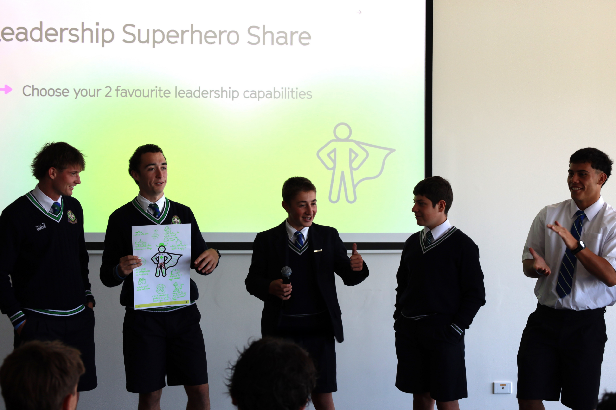 In small groups, students identified opportunities to launch meaningful personal and collective initiatives that will positively shape our school community in 2026. A highlight of the session was the co-creation of a shared leadership “trademark” — a practical recipe for success that captures the character and example they aspire to model.