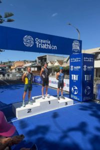 Darcy Williams, placing third. Photo: @Ballarat Triathlon Club Congratulations to Darcy Williams (SPC 2016-21) who raced in the Oceania Sprint Championships Elite Men in Napier, New Zealand, finishing third for Australia on the U23 podium.
